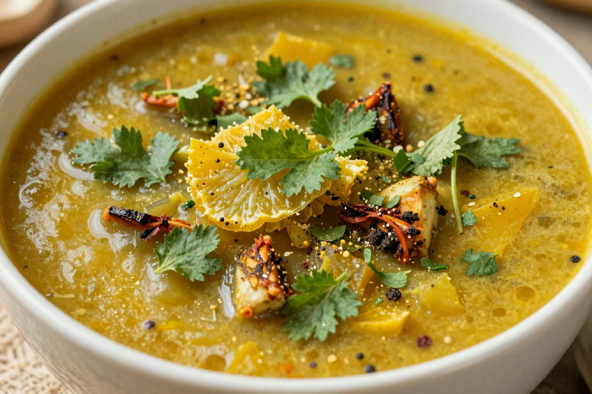 Il Rasam è una zuppa piccante a base di pomodoro, tipica del Sud India. Inizia facendo un soffritto con cipolla, aglio e zenzero in un po’ di olio. Aggiungi i pomodori tagliati a pezzi, un cucchiaino di tamarindo e un mix di spezie come il coriandolo e il pepe nero. Lascia cuocere per circa 10 minuti, poi aggiungi acqua e fai sobbollire. Puoi servirla calda, accompagnata da riso o semplicemente come un antipasto. Questa zuppa è un ottimo modo per risvegliare le papille gustative e riscaldare l’atmosfera, perfetta anche per chi ama i sapori intensi.